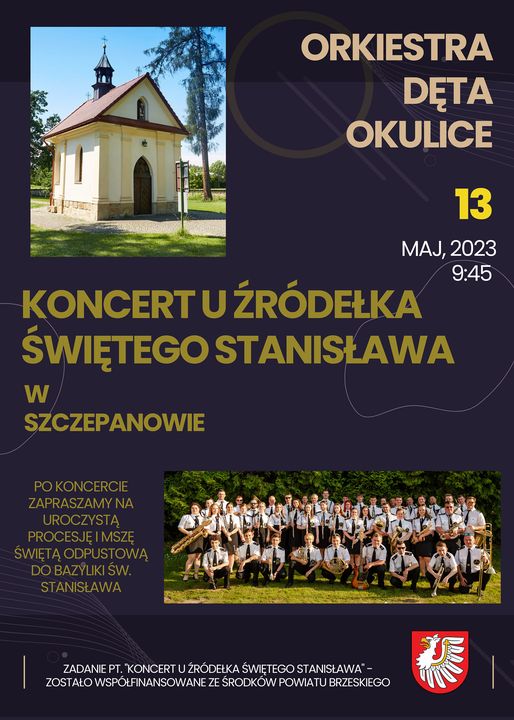W najbliższą sobotę 13 maja 2023 roku o godzinę 9:45 w Szczepanowie przy Kaplicy narodzenia Św. Stanisława BM odbędzie się koncert w wykonaniu Orkiestry Dętej Okulice.