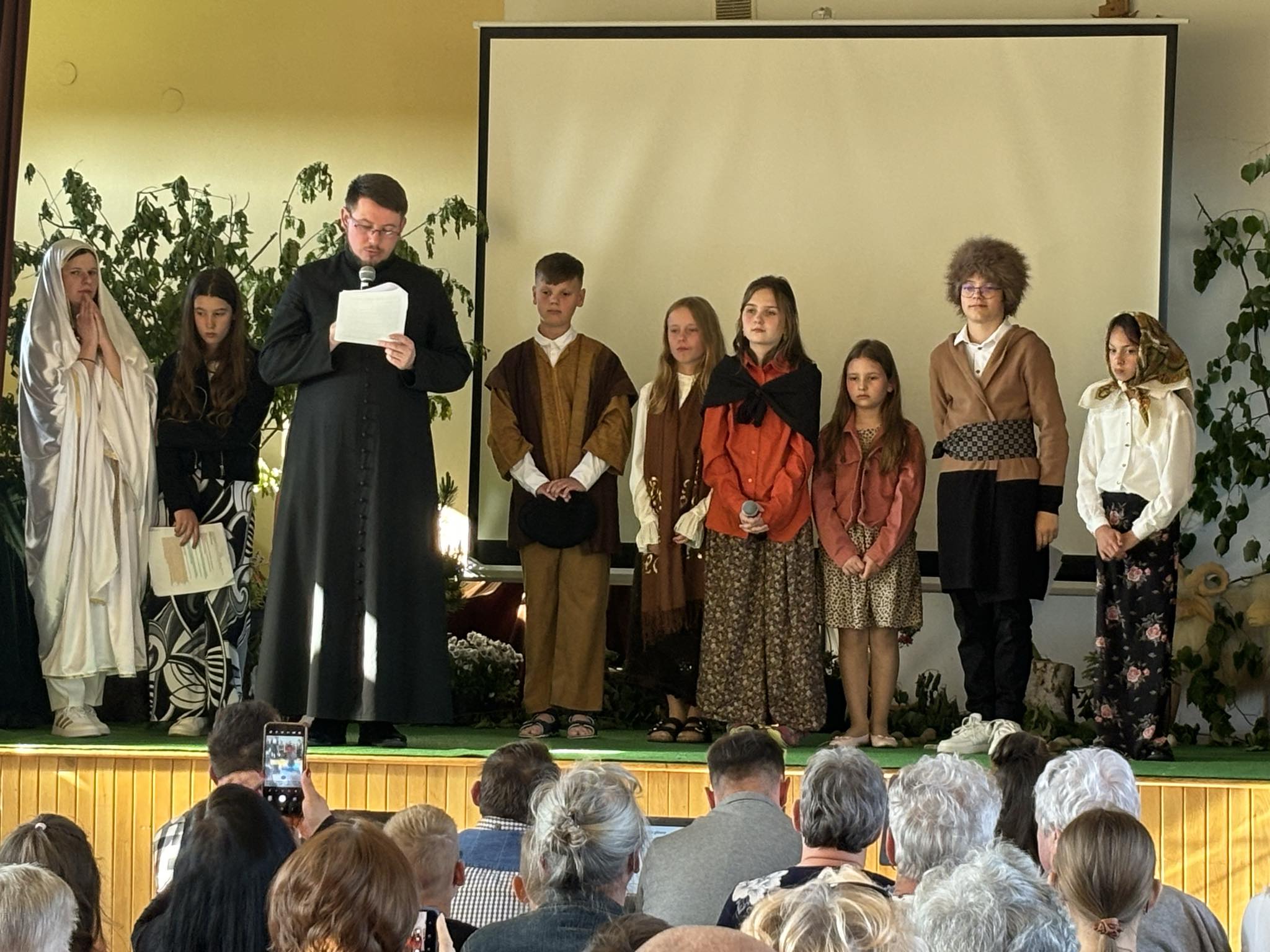 Dziękujemy dziewczynkom i chłopcom zaangażowanym w przedstawienie oraz wszystkim, którzy tak licznie przybyli na spektakl. Mamy nadzieję, że przypomnienie ogromnej mocy i siły, która płynie z odmawiania Różańca przyczyni się do licznego uczestnictwa w nabożeństwach fatimskich odprawianych w naszej parafii, 13 dnia każdego miesiąca, począwszy od maja do października oraz do praktykowania codziennej modlitwy różańcowej w swoich rodzinach.