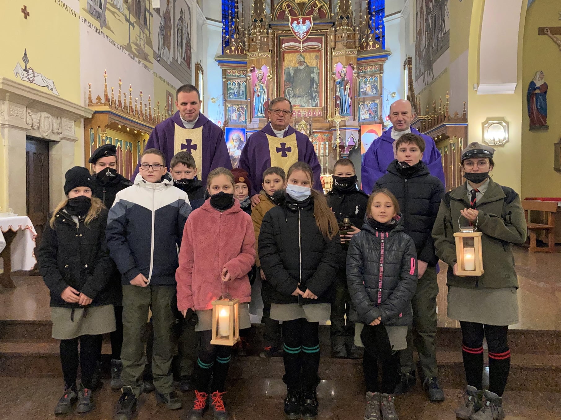 Betlejemskie Światło Pokoju dotarło także w minioną niedzielę 19 grudnia do Szczepanowskiej Bazyliki za pośrednictwem harcerzy z Hufca ZHP im. M.Kopernika w Brzesku – przynieśli je młodzi druhowie ze Szkoły Podstawowej w Sterkowcu pod opieką druhny Marysi Wszołek. Stąd każdy z parafian mógł je zabrać na swój wigilijny stół.